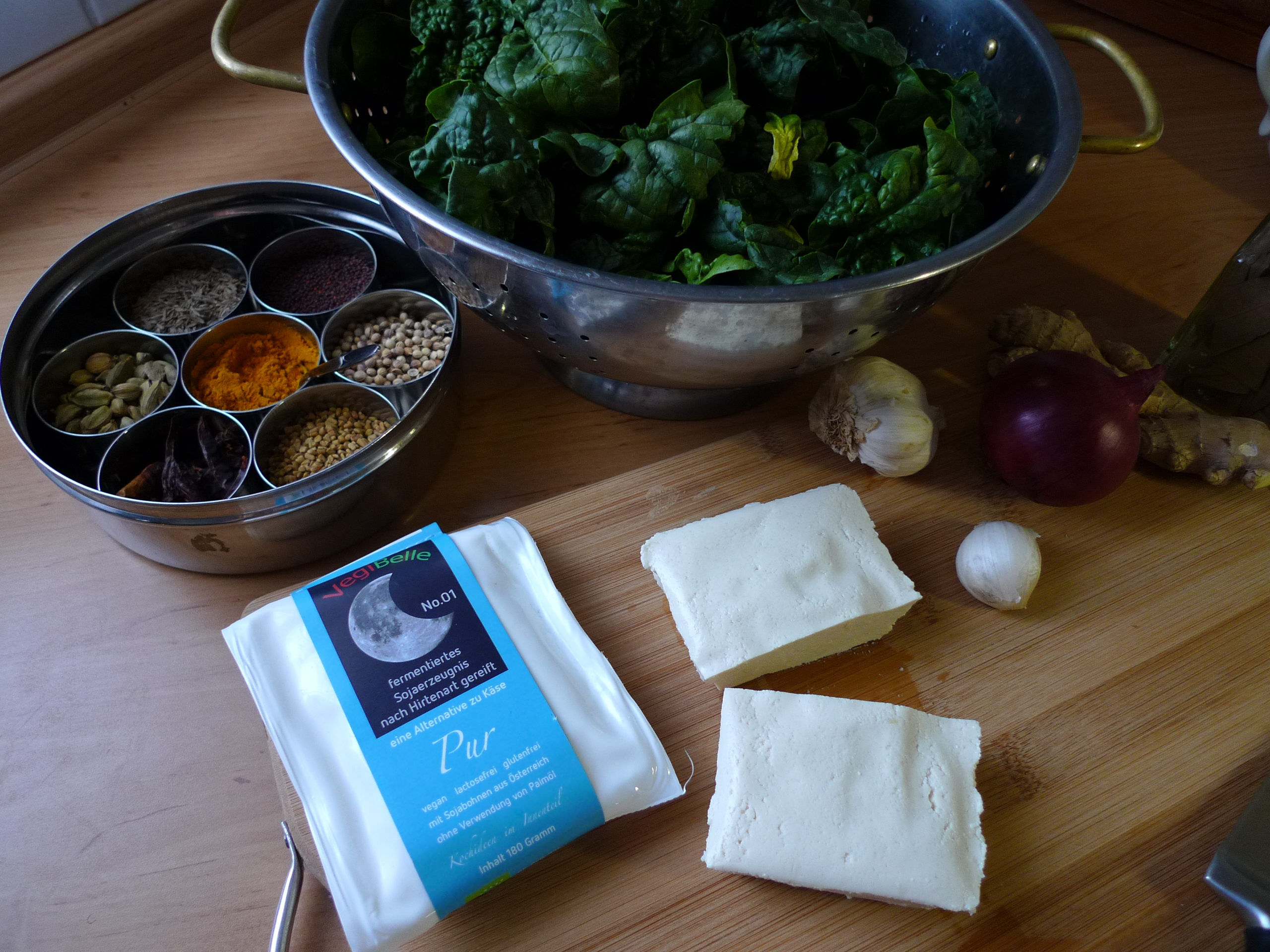 Most vegan recipes for Palak Paneer use tofu. While this works well, an even tastier and healthier option is VegiBelle Pur by Tofumanufaktur Nagel. VegiBelle is also made of tofu, but it’s actually fermented like a traditional cheese!